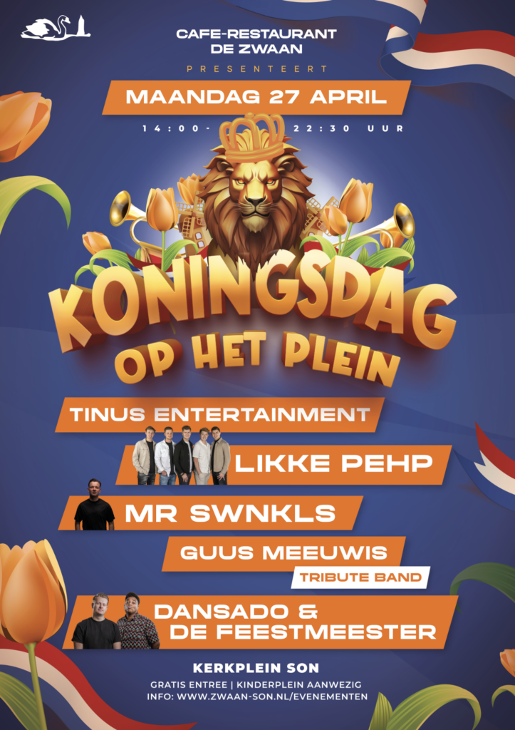 Op maandag 27 april organiseren Giggut Events, Foolen Audio & Light en café-restaurant De Zwaan in samenwerking met het Oranjecomité een groots evenement op het Kerkplein.