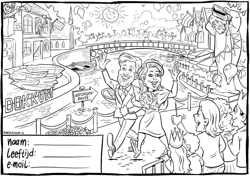 Deze kleurplaat is van Sandor Paulus en is in opdracht van de Koninklijke Bond van Oranjeverenigingen gemaakt. De kleurplaat is landelijk beschikbaar bij alle deelnemende Oranjeverenigingen.